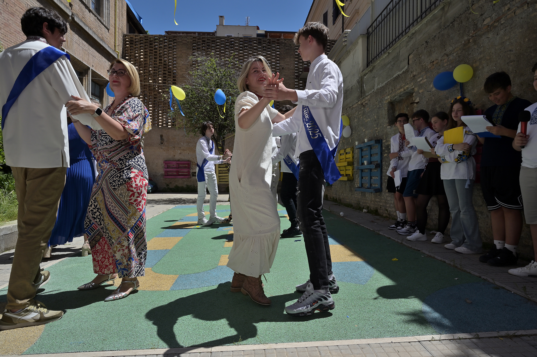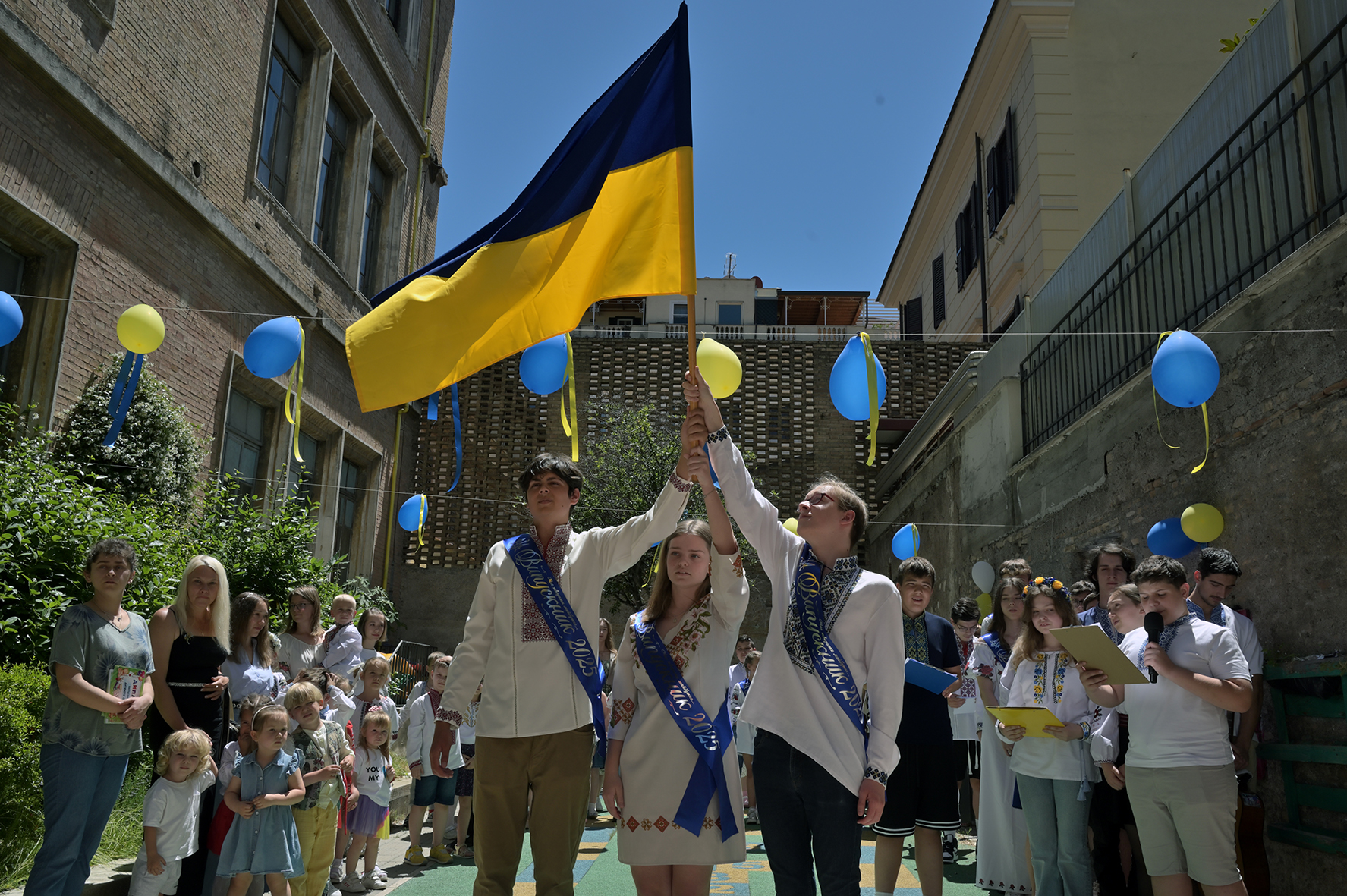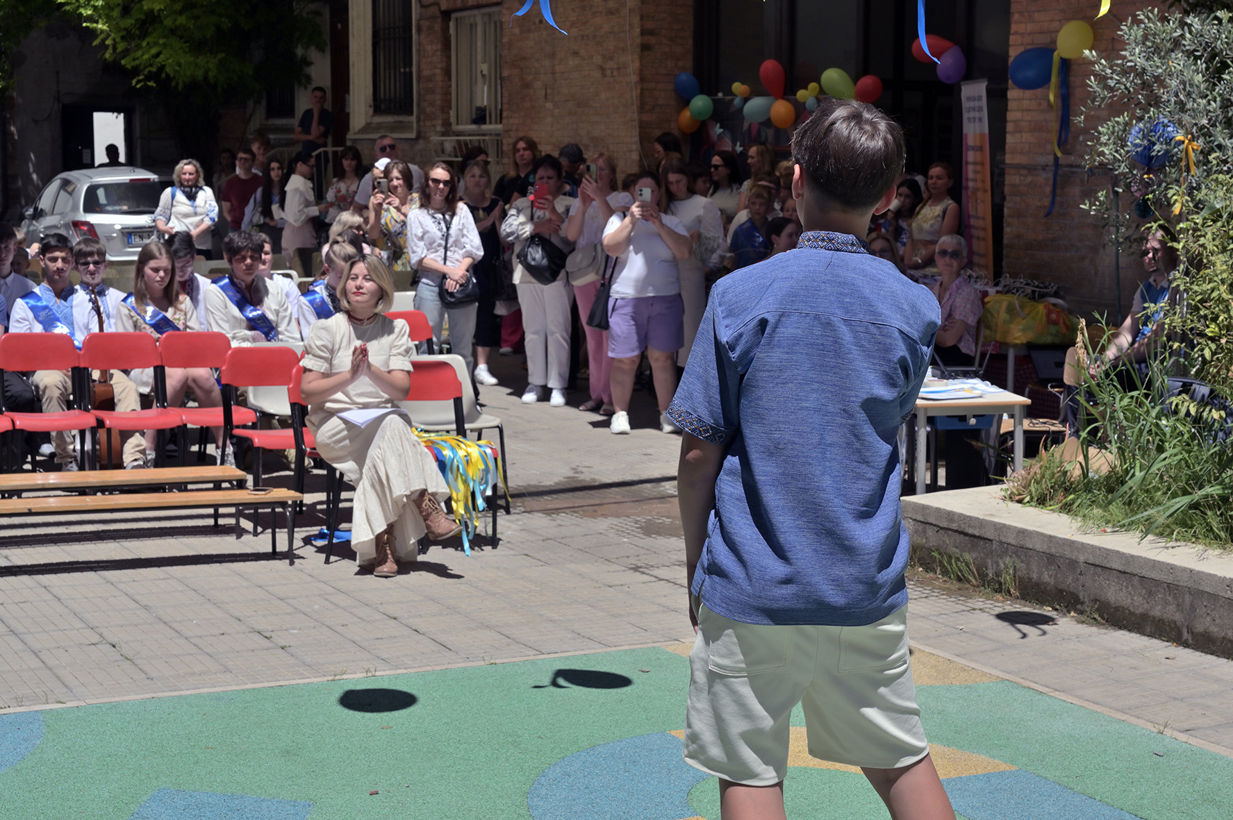 Gli adulti presenti, sia il corpo docenti che i genitori venuti a sostenere e festeggiare i propri figli, sembrano voler lasciare da parte, almeno in questa giornata, l’argomento del conflitto con la Russia. Benché il pensiero della guerra trapeli, in ogni discorso, dall’emozione con cui parlano del loro paese lontano, si avverte, nelle parole pronunciate con qualche difficoltà, una vena di stanchezza ed una scarsa speranza che questo conflitto doloroso possa avere fine a breve, nonostante le notizie sulle trattative già intercorse tra le delegazioni dei due paesi e quelle che ancora proseguiranno.