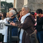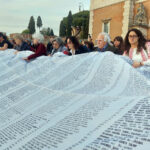 “Un archivio della dignità, nomi, storie, biografie che fanno parte di tutti noi per sempre, un sudario che copre tutti e tutte noi dalla sconcezza di questo tempo, in cui non fa scandalo compiere un genocidio ed esportare Gaza, diventata una vera e propria dottrina di annientamento, anche in altri luoghi come Beirut e Teheran” ha continuato Paola Caridi, in un clima di commozione che ha lentamente pervaso tutti, soprattutto quando, giunti di fronte al Cimitero monumentale del Verano, attori e organizzatori dell’evento si sono alternati nella lettura di alcuni dei nomi degli uccisi: alcuni di loro avevano pochissimi mesi, anche un solo giorno di vita.