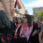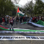 Quasi alla fine del corteo, una ragazza, ferma ai bordi della strada, con il capo velato e con gli occhi colmi di lacrime, attira l’attenzione delle persone che sfilano. Alcuni si fermano, le vanno incontro e le parlano. Lei guarda incredula il corteo, è una studentessa universitaria, ha vinto una borsa di studio ed è da poco tempo a Roma. Non parla bene l’italiano ma si fa capire. “Ho riconosciuto la bandiera palestinese e quasi non ci credevo. Tutte queste persone sfilano per noi.” dice tra le lacrime, “Per la prima volta, da quando sono in Italia, vedo un corteo per la Palestina” molti l’abbracciano e le chiedono se ha bisogno di aiuto, la invitano a seguire il corteo ma lei rifiuta: “Ho troppo dolore, ho visto morire troppi amici, troppe persone, non posso venire, non ce la faccio a sostenere altro dolore”.