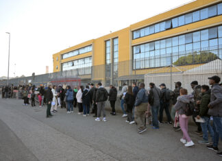 Persone di origine straniera attendono quotidianamente in fila in via Patini a Tor Sapienza di fare domanda per permesso di soggiorno